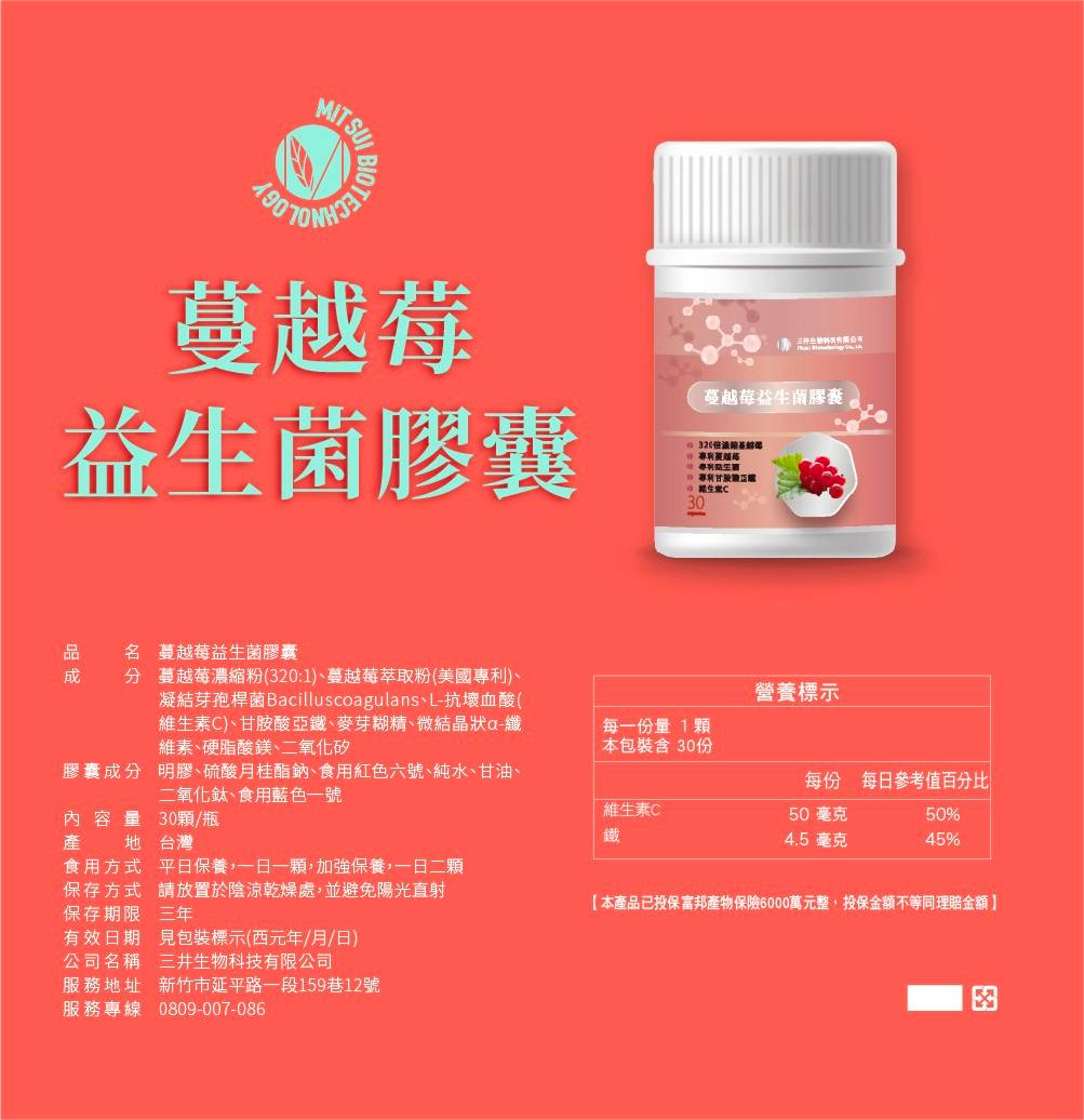 三井生技 膠囊蔓越莓益生菌膠囊 (台灣現貨/開立發票)