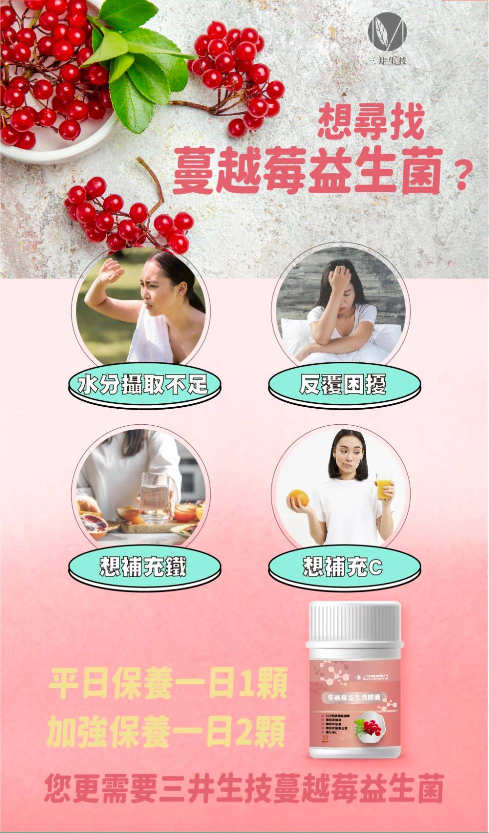 還在找尋便宜又好的蔓越莓益生菌嗎?  三井生技「蔓越莓益生菌」就是您的秘密武器!