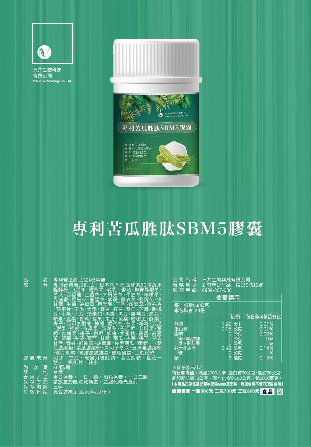 三井生技「專利苦瓜胜肽SBM5」許願上市!