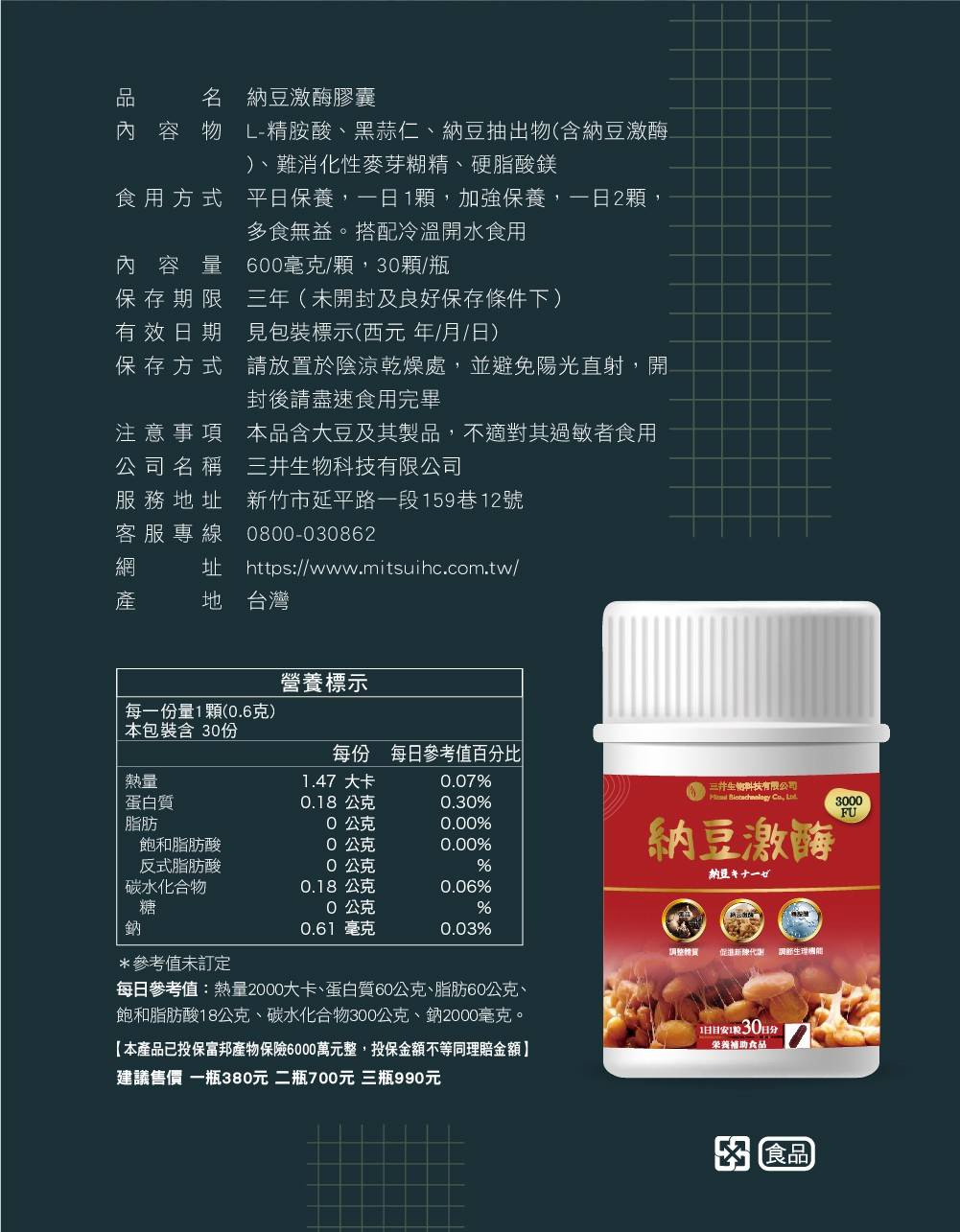 ✨✨✨三井生技「熱門暢銷納豆激酶膠囊」瓶裝版閃亮登場✨✨✨