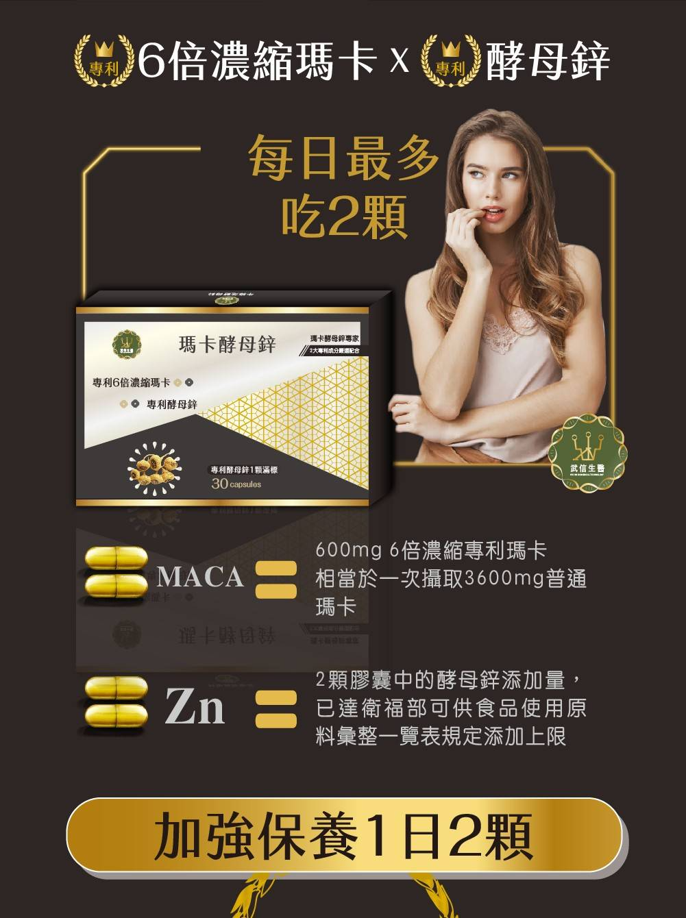 原料:6倍濃縮瑪卡萃取、酵母鋅