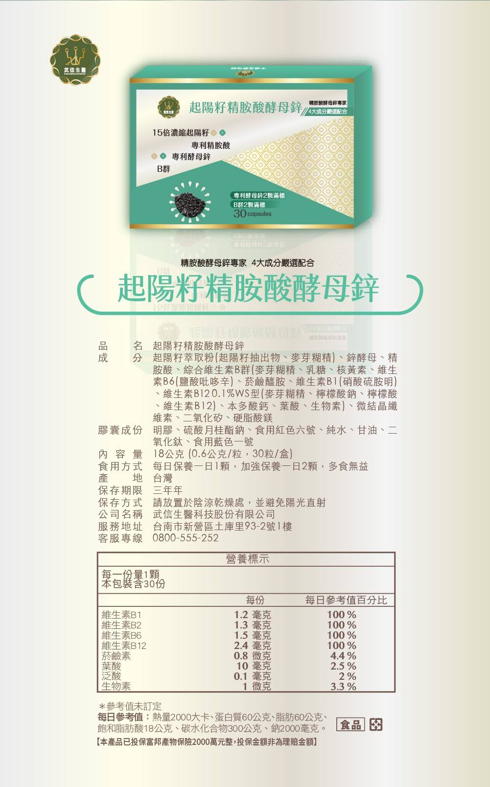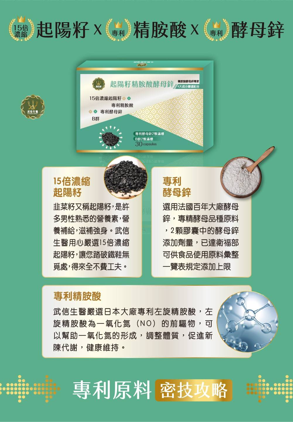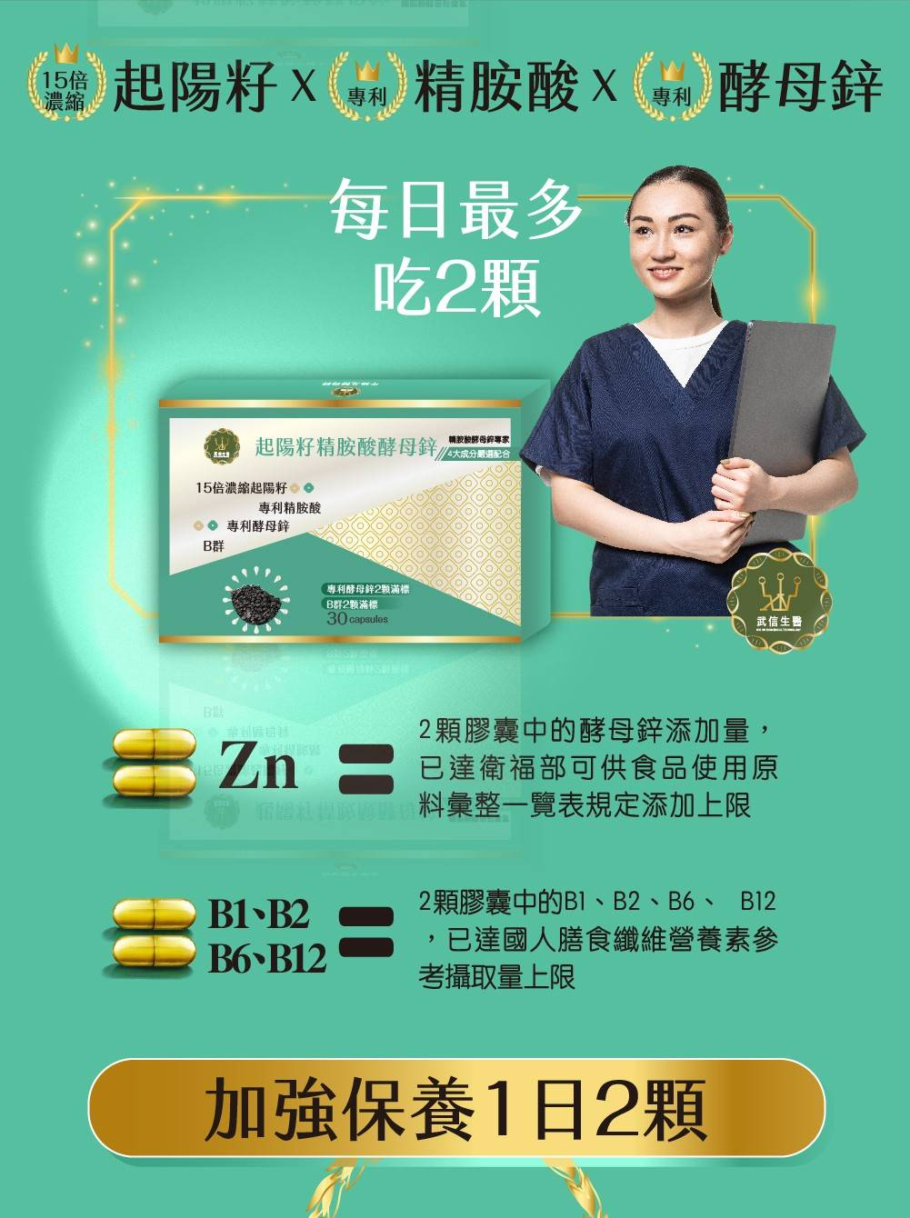 原料:15倍濃縮起陽籽、精胺酸、酵母鋅、維生素B群(B1/B2/B6/B12)