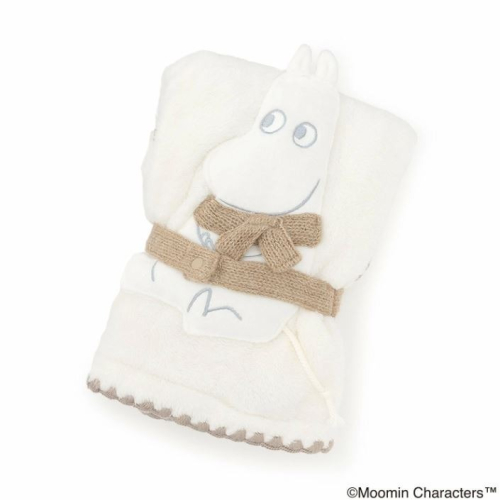 毛毯捲起後,扣上扣環,就變成了一個裹著圍巾的姆明毛絨玩具。