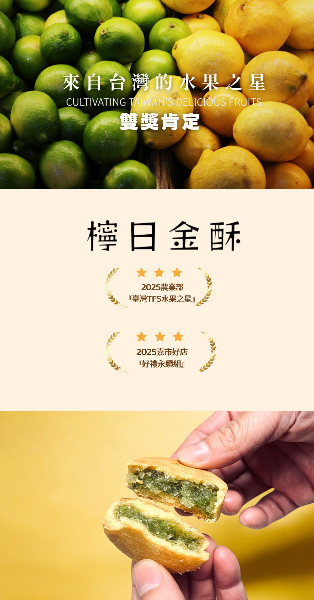 ☀︎ 檸日金酥採用台灣金桔 × 檸檬,打造爽口不膩的經典果香酥,符合SDGs永續發展目標
