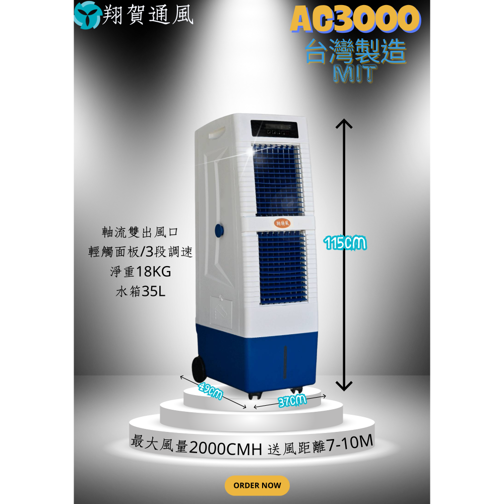 這款翔特風AC3000移動式水冷扇是一款高效節能的冷卻設備,適合各種需要降溫的場所使用。