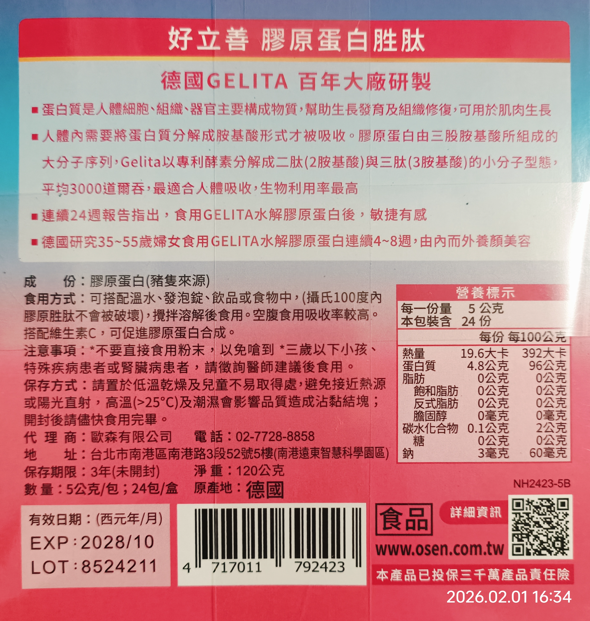 100%德國GELITA原料 百年經驗,全球膠原蛋白市場領導品牌