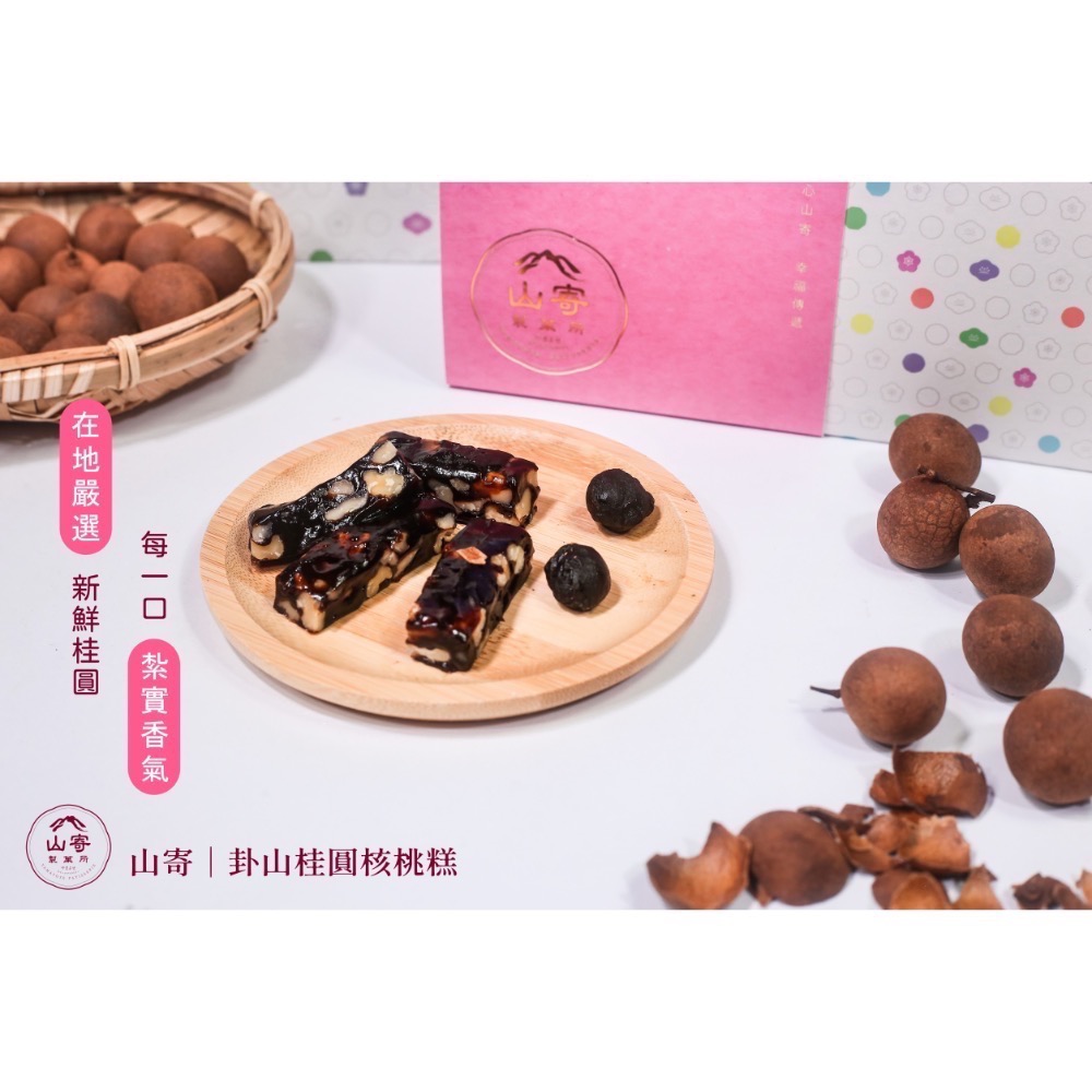 「山寄南棗核桃糕」使用在地炭燒龍眼乾,與美國進口核桃、低糖紅豆泥、棗泥將等優質原料、遵循傳統工作法,細火慢慢熬煮,煮出龍眼乾與棗泥特有的香氣,搭配核桃溫潤口感,吃的到果肉纖維在唇齒間激盪出軟糯迷人的滋味,讓人彷彿回到百年前人文薈萃的彰化古城中遨遊,是旅遊彰化的最佳伴手禮。