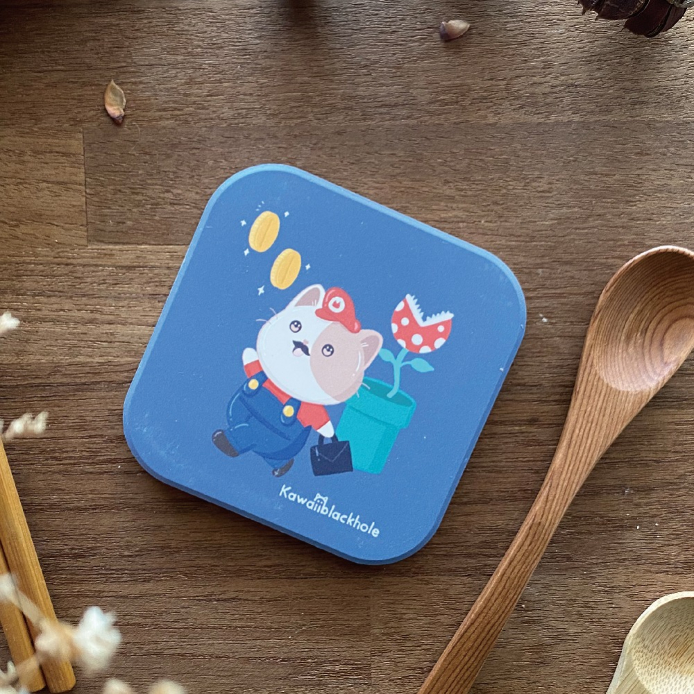 超級瑪麗貓咪-陶瓷杯墊【贈送(隨機)明信片】