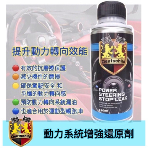 產品功能: l 形成有效的抗摩擦保護膜 l 降低所有表面的磨損 l 有效確保駕駛安全和平穩的動力轉向感 l 防止動力轉向系統漏油 l 也適合用於運動型轎跑車
