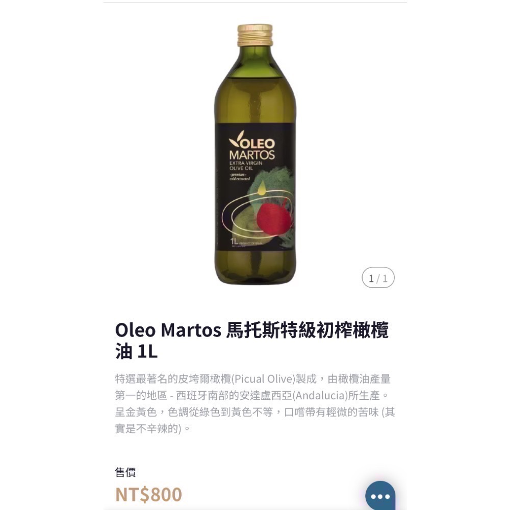 1. Oleo Martos 馬托斯特級初榨橄欖油 1L