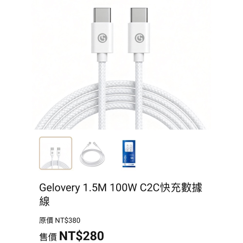 Gelovery 100W快充數據線|一條線,快充・快傳・更耐用 ・100W 高功率快充 筆電、平板、手機一次搞定 短時間補電,效率明顯提升 ・內建 E-Marker 晶片 智慧辨識設備需求 自動調整功率,穩定充電不傷機 ・相容快充協議 支援 PD / QC 快充 適用於多款 Type-C 裝置,一線通用不受限。 ・充電+傳輸同步進行 最高 USB 2.0 480Mbps 傳輸速度 30秒約傳輸1GB檔案 工作效率不被打斷 ・多層結構,耐用升級 環保純銅芯> TPE外層>尼龍編織 強韌耐拉扯,日常使用更安心 ・接頭耐久測試通過 通過 10,000 次拔插測試 接頭結構穩固,不易鬆動,長時間使用依然可靠 ・1.5 公尺實用線長 床邊、辦公桌、外出使用都剛剛好 怎麼用都不卡手