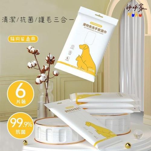 KIMHOME 寵物手套濕紙巾 一包6片 清潔去汙 乾洗澡