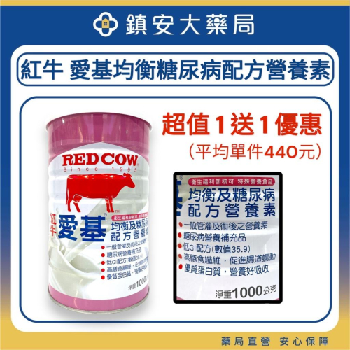 買1送1 平均單件440元 效期2026/05/21 紅牛愛基均衡及糖尿病配方營養素1000g 鎮安中西安和藥局