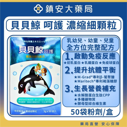 隔日/超商免運~貝貝鯨 呵護 濃縮細顆粒 50包裝入 幼兒兒童專用 兒童營養補充 提升免疫力 鎮安中西安和藥局