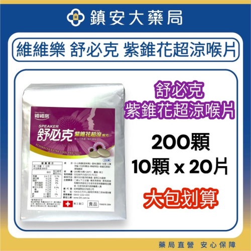 200顆大包裝 維維樂 舒必克 紫錐花超涼喉片200顆(20排) 大包裝 鎮安中西安和藥局