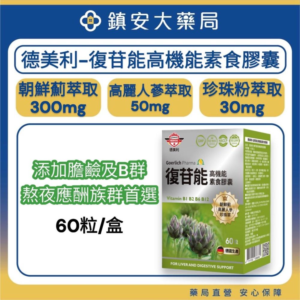 德美利-復苷能高機能素食膠囊 60粒/盒 德國生產 朝鮮薊 高麗人參 珍珠草 鎮安中西安和藥局