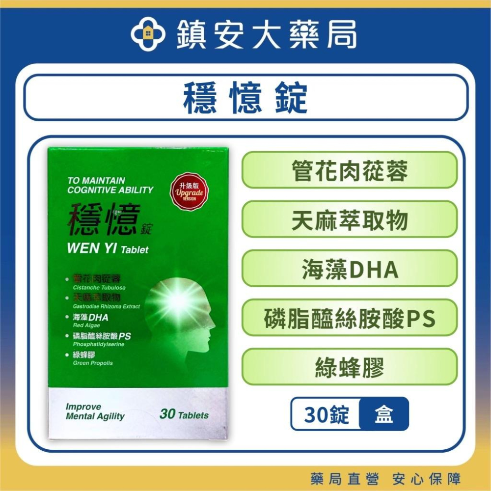 赫尼康 穩憶錠(30錠/盒) 管花肉蓯蓉 天麻萃取物 DHA PS 磷脂醯絲胺酸 綠蜂膠 蓉憶記 鎮安中西安和藥局