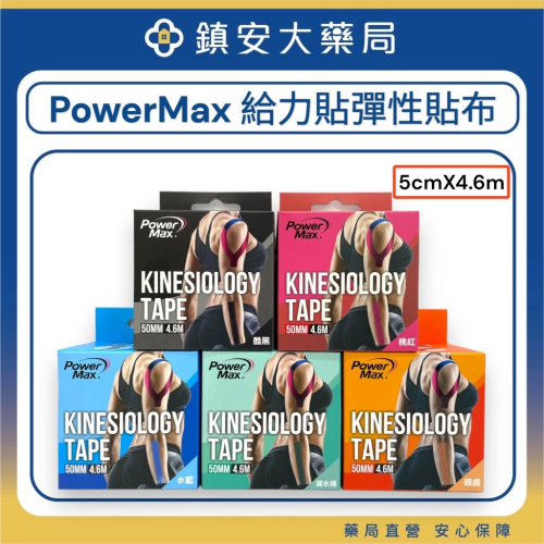 PowerMax給力貼 彈性貼布 肌貼 5cm x 4.6m 5種顏色 湖水綠/桃紅/酷黑/水藍/親膚