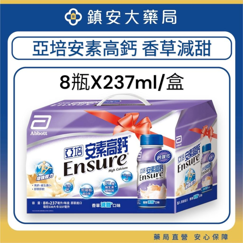 藥局直營 亞培 安素高鈣鈣強化配方8入禮盒-香草少甜口味(237MLx8入) 鎮安中西安和藥局