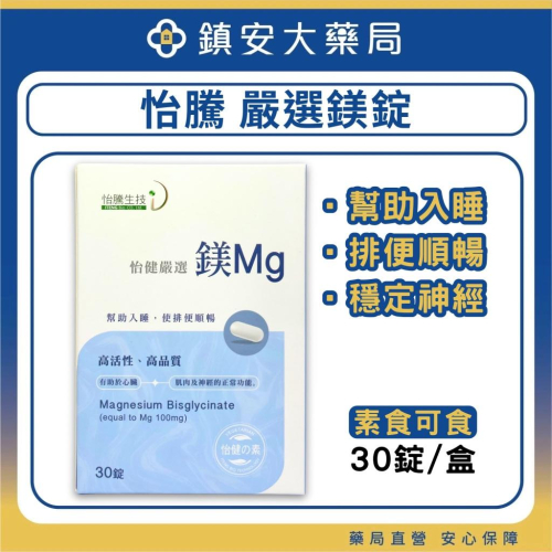 怡騰 嚴選鎂錠 30顆 鎂 幫助入睡 排便順暢 穩定神經 鎮安中西安和藥局