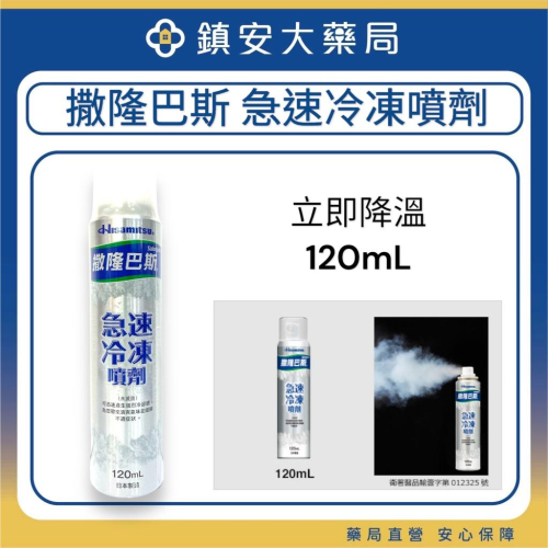 商品名稱:撒隆巴斯 急速冷凍噴劑 規格:120ml 貨源:公司貨 劑型:噴劑 產地:台灣 醫療器材許可證所載核准字號:衛署醫器輸壹字第012325號 醫療器材許可證所載品名:撒隆巴斯急速冷凍噴劑(未滅菌) 醫療器材許可證所載藥商名稱:日商久光製藥股份有限公司 台北分公司 製造廠名稱及地址:HISAMITSU PHARMACEUTICAL CO., INC. TASHIRO-DAIKANMACHI TOSU SAGA JAPAN 保存期限:5年