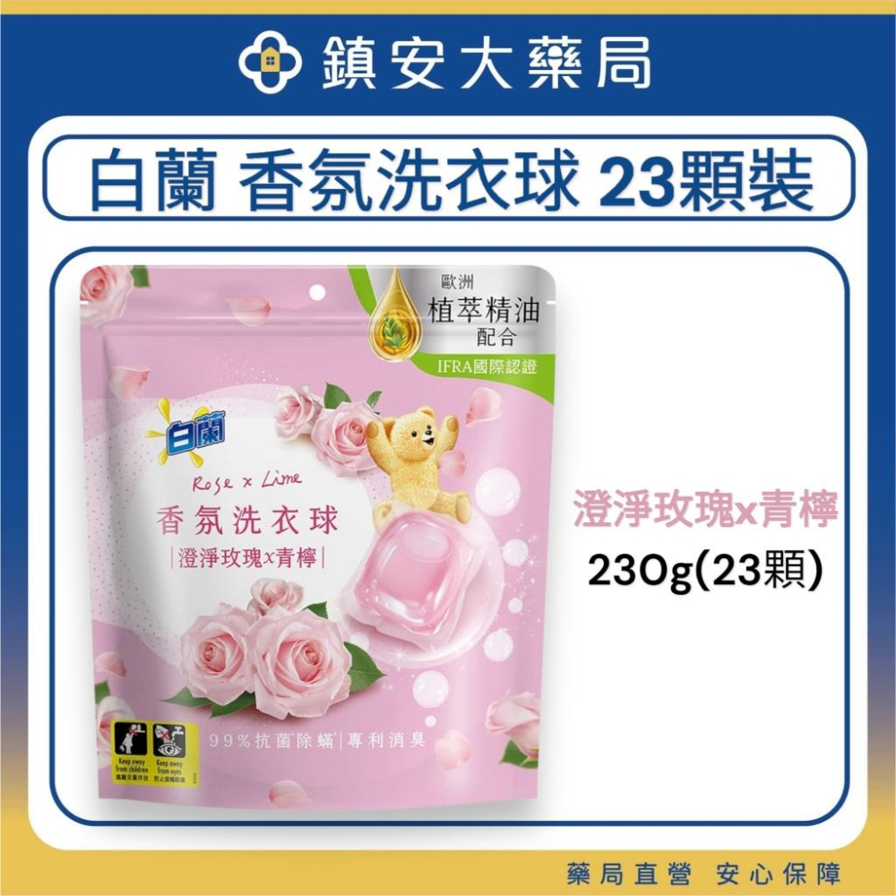 藥局直營【白蘭】熊寶貝香氛洗衣球 23顆/袋 澄淨玫瑰x青檸 鎮安中西安和藥局