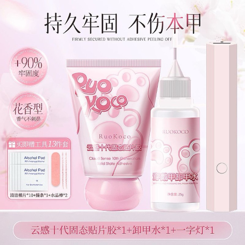雲感十代固態貼片膠+卸甲水+一字燈+清潔棉片*10+搓條+水晶棒*2