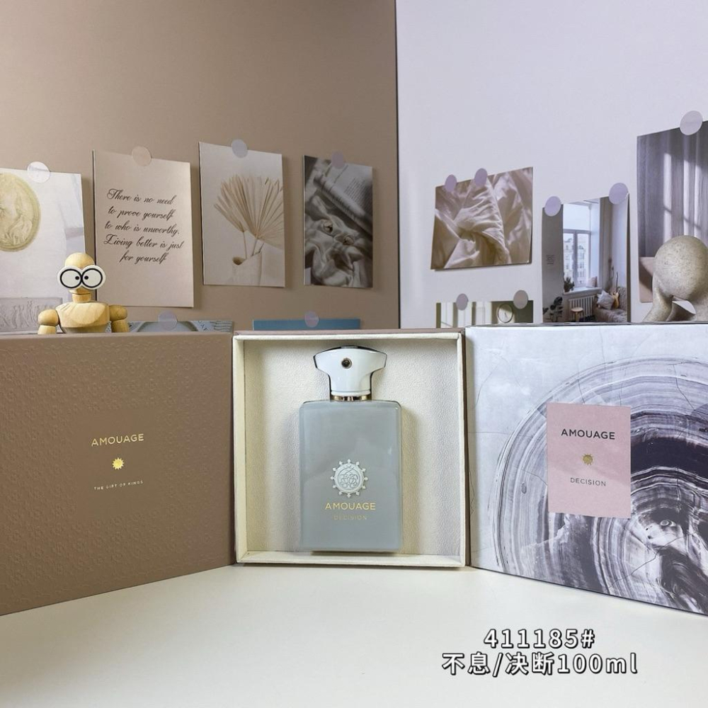 認准廠圖 明通質量 愛慕411185#不息/決斷100ml Amouage Decision, 2025 品牌:Amouage 調香師:Quentin Bisch 屬性:中性香 香調:芳香木質調 前調:香檸檬粉紅胡椒小豆蔻 中調:杜松子乳香沒藥 後調:雪松香草廣藿香