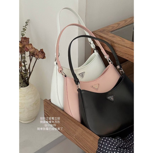 颜色粉色/白色/黑色新款𝐏𝐑𝐀𝐃𝐀包包专柜刚上的新品马上给大家安排上做第一批拥有的人 颜值当道包包注重高品质 做我们家粉好爽~