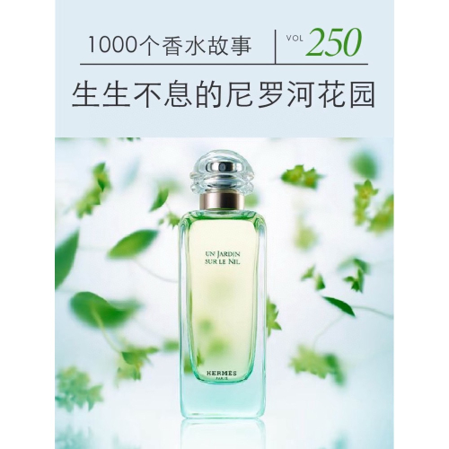 HERMES 爱马仕尼罗河花园香水100ML,爱马仕经典款香水。一座充满朝气的花园,大方睿智。青芒果、莲花和芬芳的菖蒲香味,与乳香和槭木气息自然相融。清新的花果香调,前调:灯心草 埃及青芒果 柑橘,中调:茉莉 睡莲 橙花,后调:无花果树 乳香 西洋柏。闻过了那么多甜腻花香,偶尔来一些清新的果香也别有一番风味。