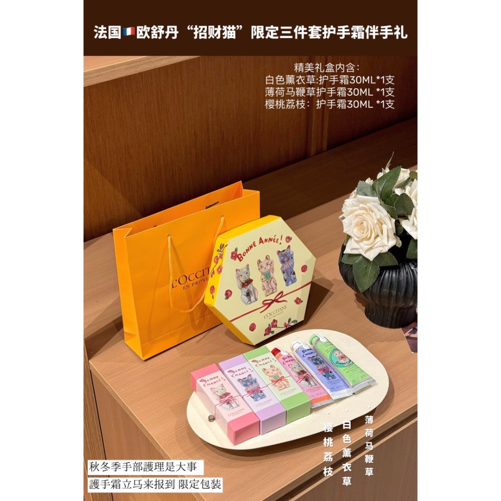 法國🇫🇷歐舒丹“招財貓”限定三件套護手霜伴手禮