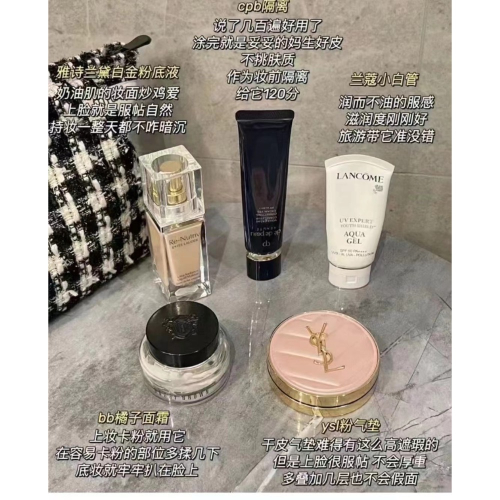 白金粉底液+cpb隔離+蘭蔻防曬+橘子面霜+粉皮革氣墊