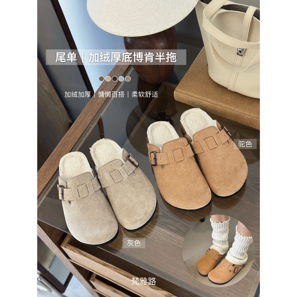 加絨厚底博肯半拖