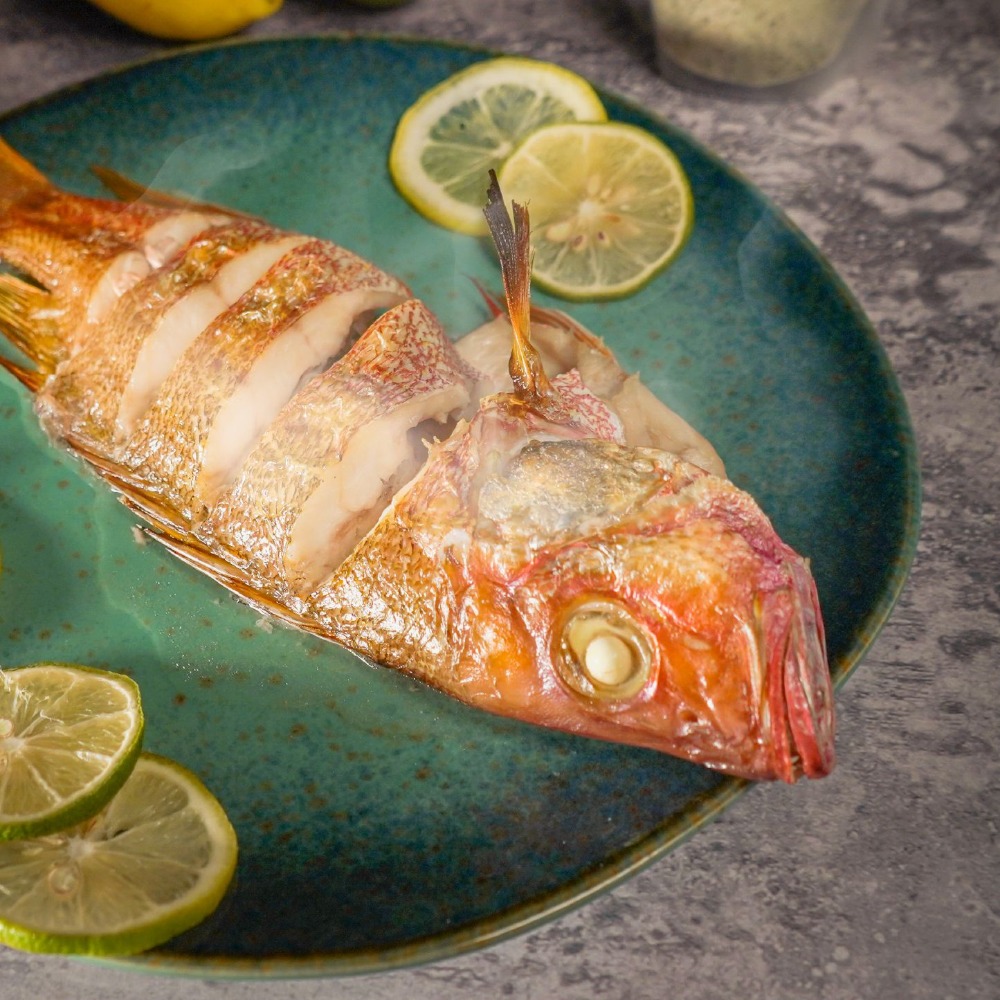 赤鰭笛鯛330g:上等食用魚,肉質厚實彈牙且魚刺少,清蒸就能吃出高級的食材原味。