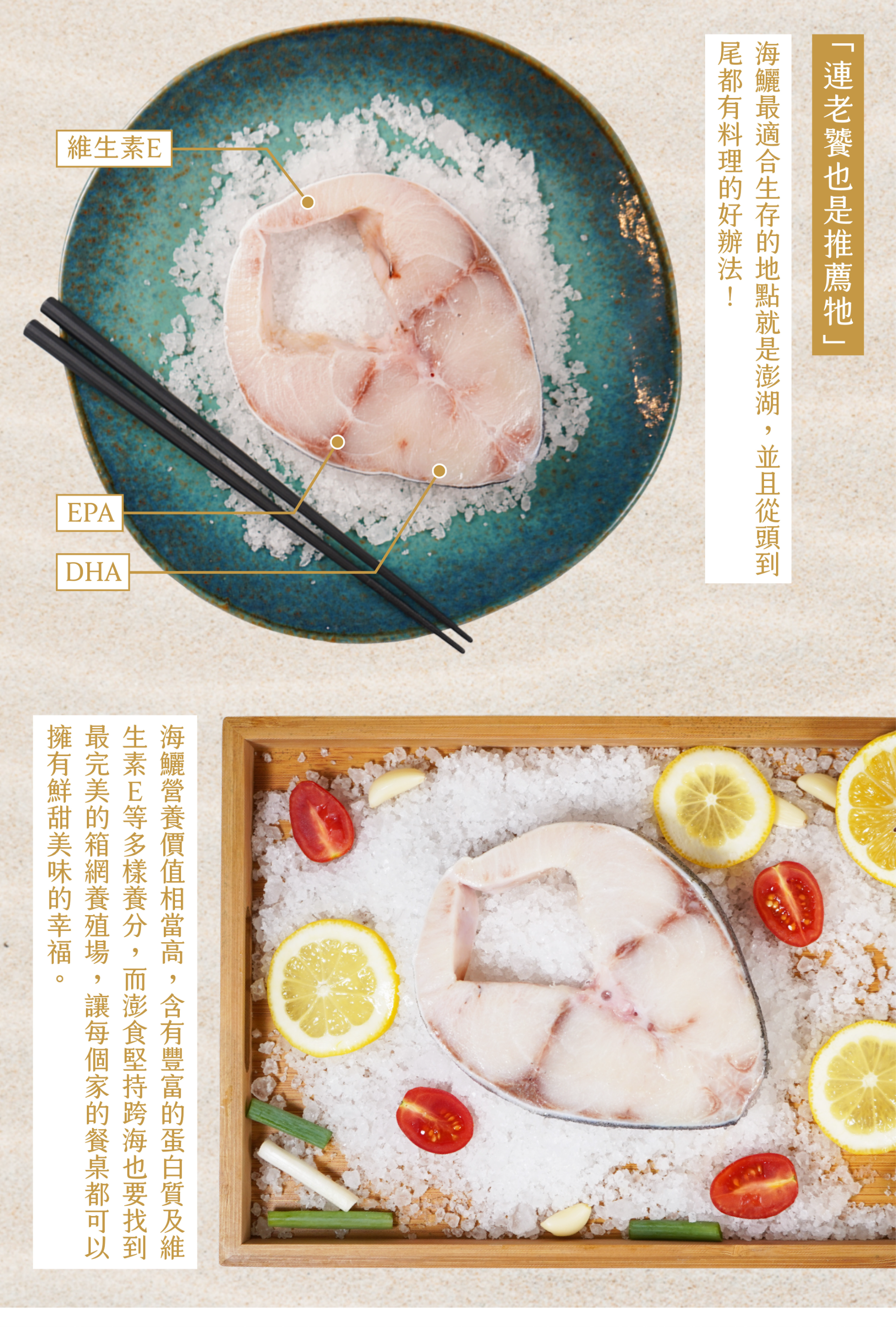 澎湖優鮮認證,保證澎湖產,加上使用急速冷凍的方式,因此海鱺輪切可以及時鎖住新鮮和營養,大份量的輪切方式,最適合一家人一起享用!!外海箱網養殖,魚肉的口感更不在話下,鮮嫩無土味,只需一口便彷彿置身在澎湖。
