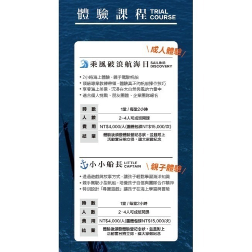 - 頂級專業教練帶領,體驗真正的帆船操作技巧