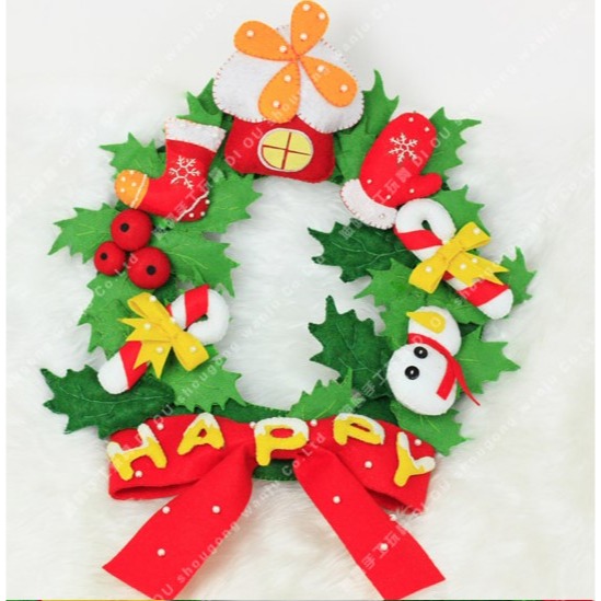 不織布需要自行裁切縫製完成,耶誕飾店吊飾聖誕圈,幼兒園或是居家裝飾都很有氛圍唷,拐杖糖造型聖誕花圈。