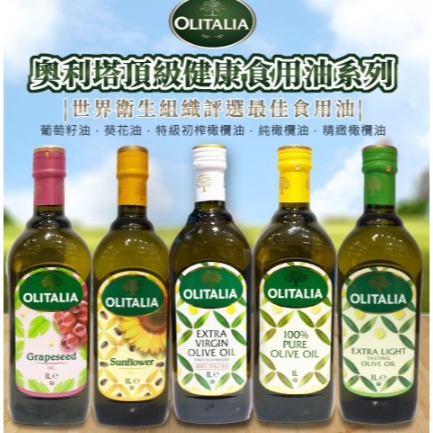 奧利塔 純橄欖油/頂級葵花油/葡萄籽油/特級初榨橄欖油/玄米油/精緻橄欖油1L