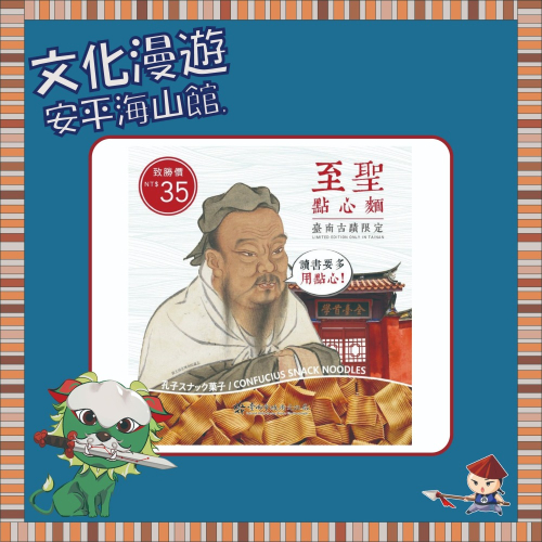 為了讓大眾感受臺南古蹟的魅力,臺南市政府文化局特別取得國立故宮博物院館藏孔子圖像授權,並以國定古蹟「全臺首學」臺南孔廟為概念延伸,打造創意滿分的零食,無論是讀書、工作都能邊吃邊做,餵飽你的同時,也用心幫你加油!