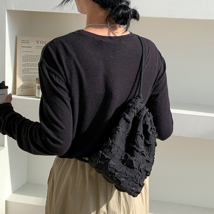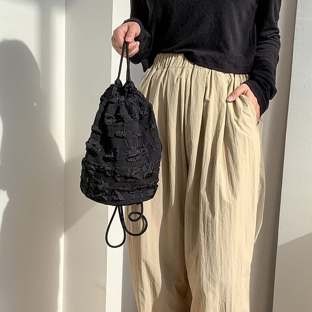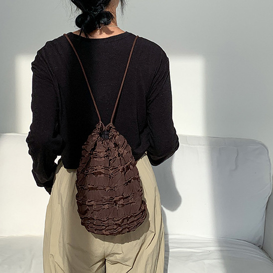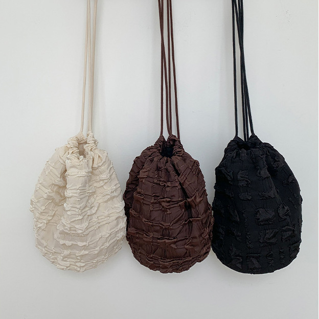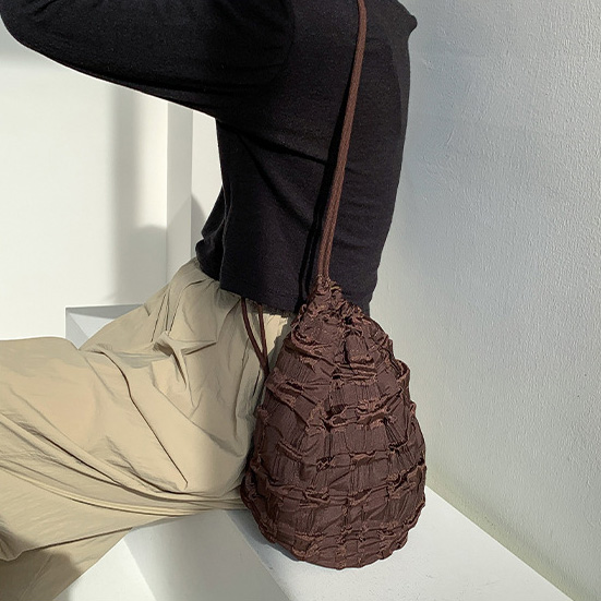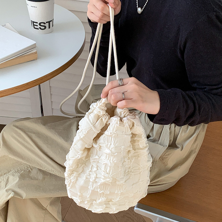 包包 水桶包 日系迷你褶皺抽繩水桶包 尼龍單肩包側背包 日常通勤簡約雙肩包 #2406180001