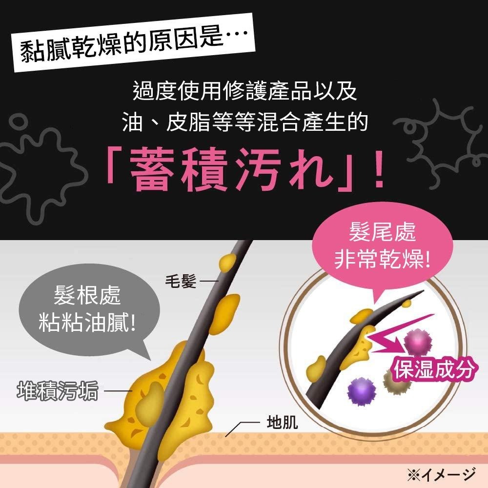 ●徹底洗淨頭皮上堆積的污垢,提高成分的滲透:保濕成分,補充秀髮水份,洗後髮根輕盈,髮絲濕潤