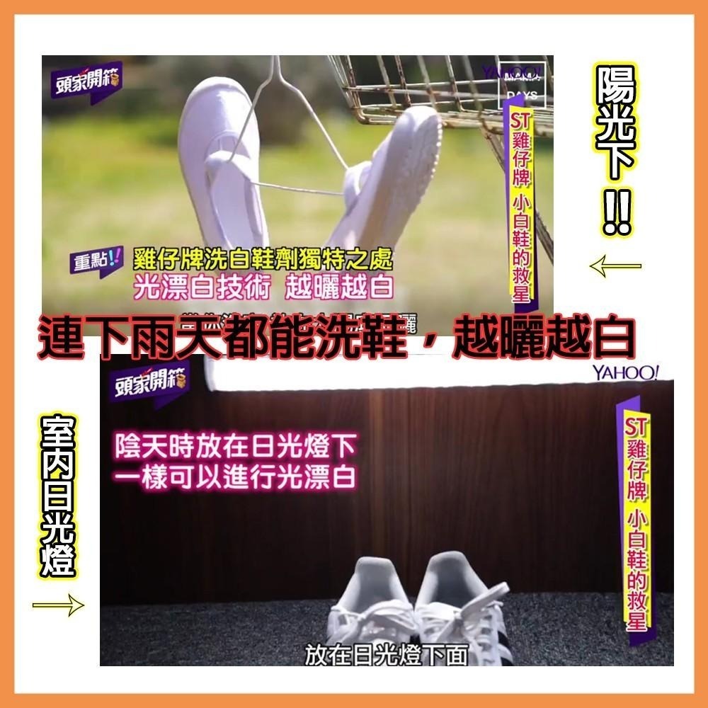 洗過的鞋子曬在陽光下激活漂白成分,分解汙漬與異味不會變黃更加白淨