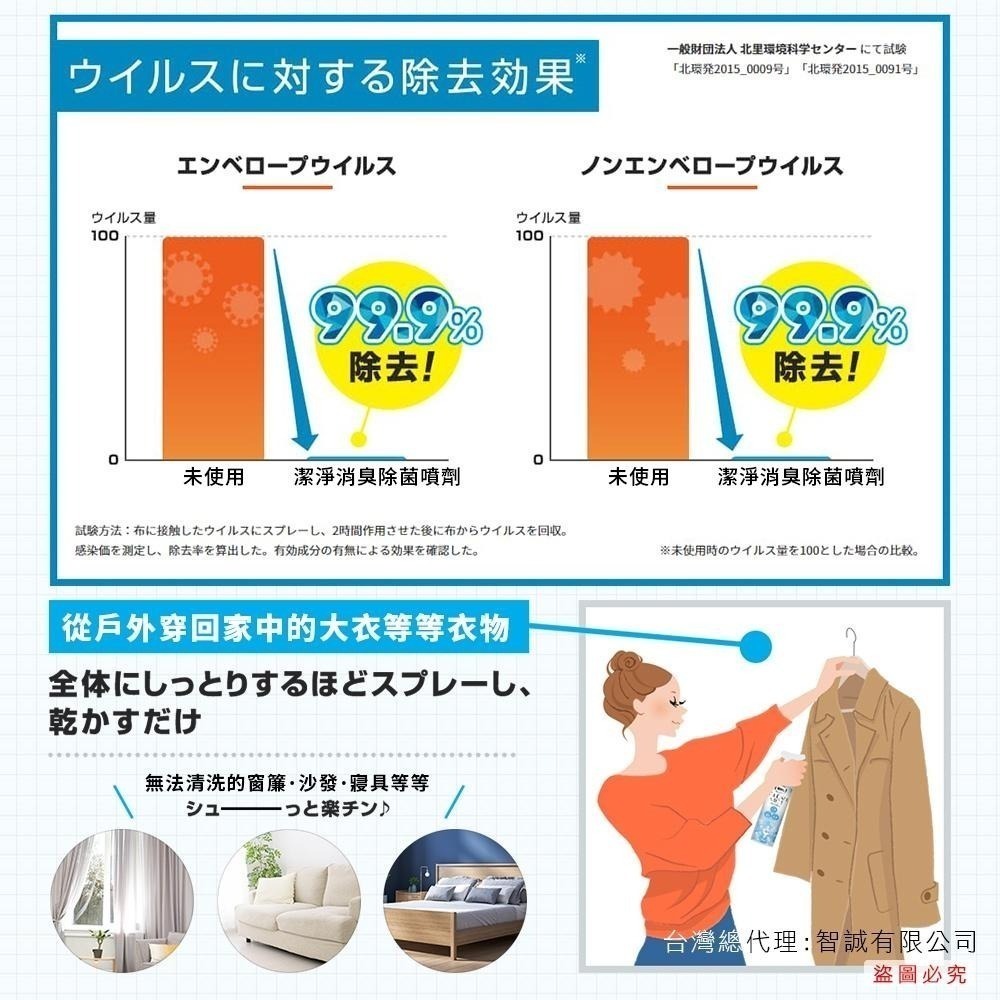 ●徹底消除布製品上的異味以及抑制細菌、病毒,清潔感最佳!