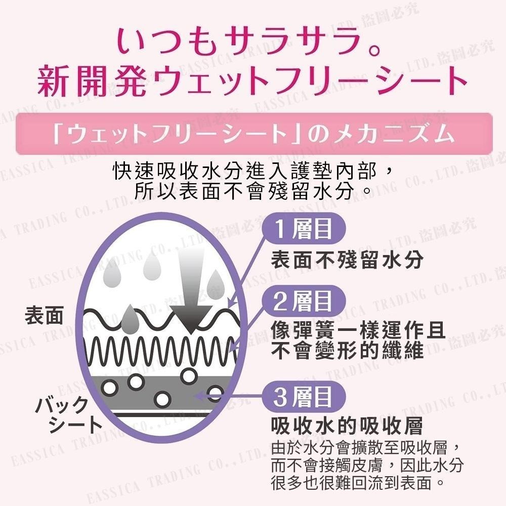 ◆表層採用獨創平滑吸水層,液體可在短時間內滲入薄棉內,令水分不會殘留於表面,長時間保持清爽感覺