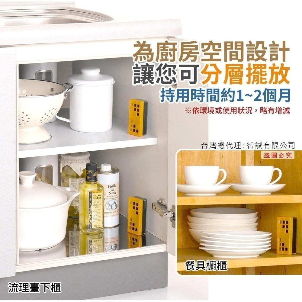 用途:流理臺下櫃和餐具櫥櫃消臭用