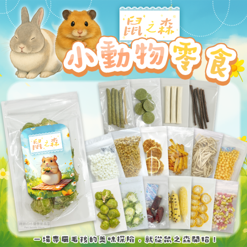【現貨】鼠之森 小動物零食 結球甘藍 磨牙玉米 烘烤玉米切片 棉花糖 五彩水果球 麵包丁 格子煎餅 磨牙棒 小寵零食