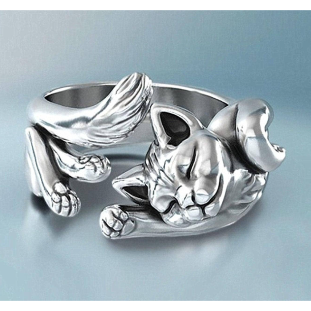 沉睡貓咪設計開口戒指