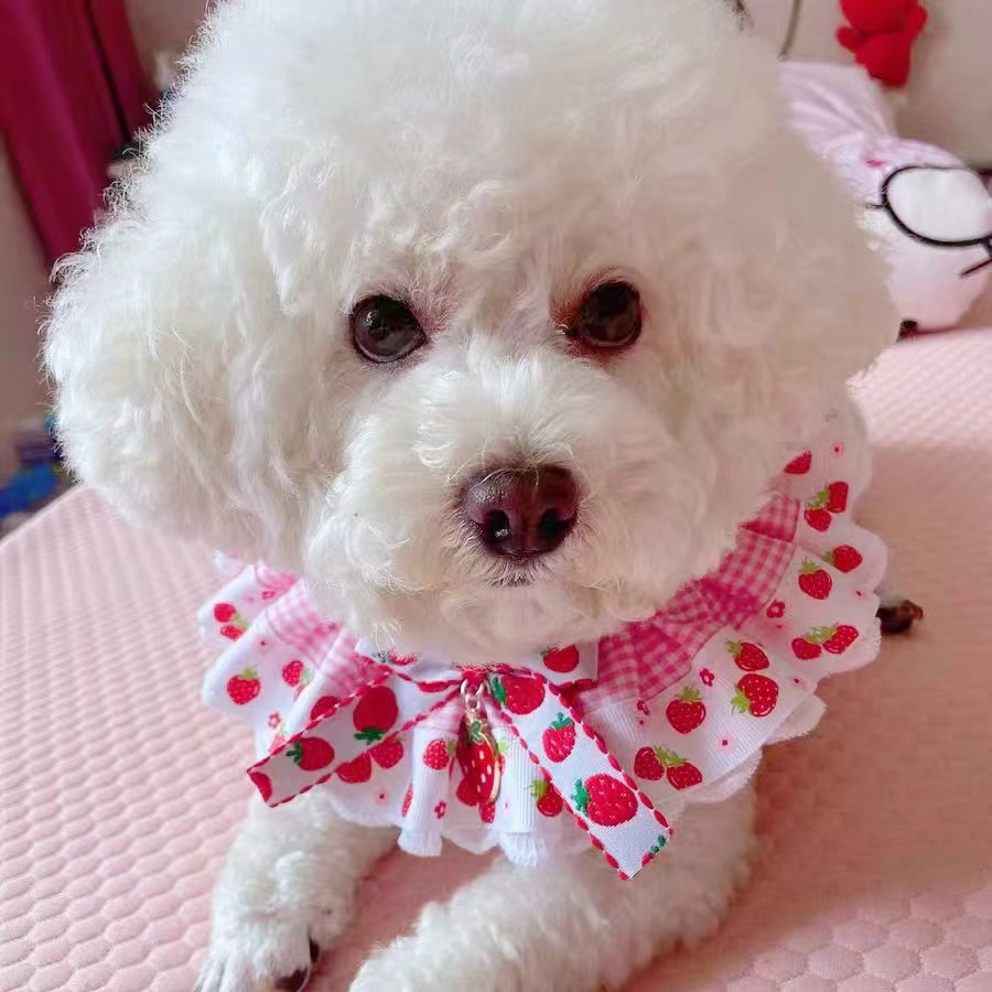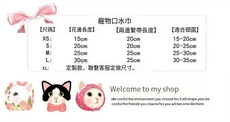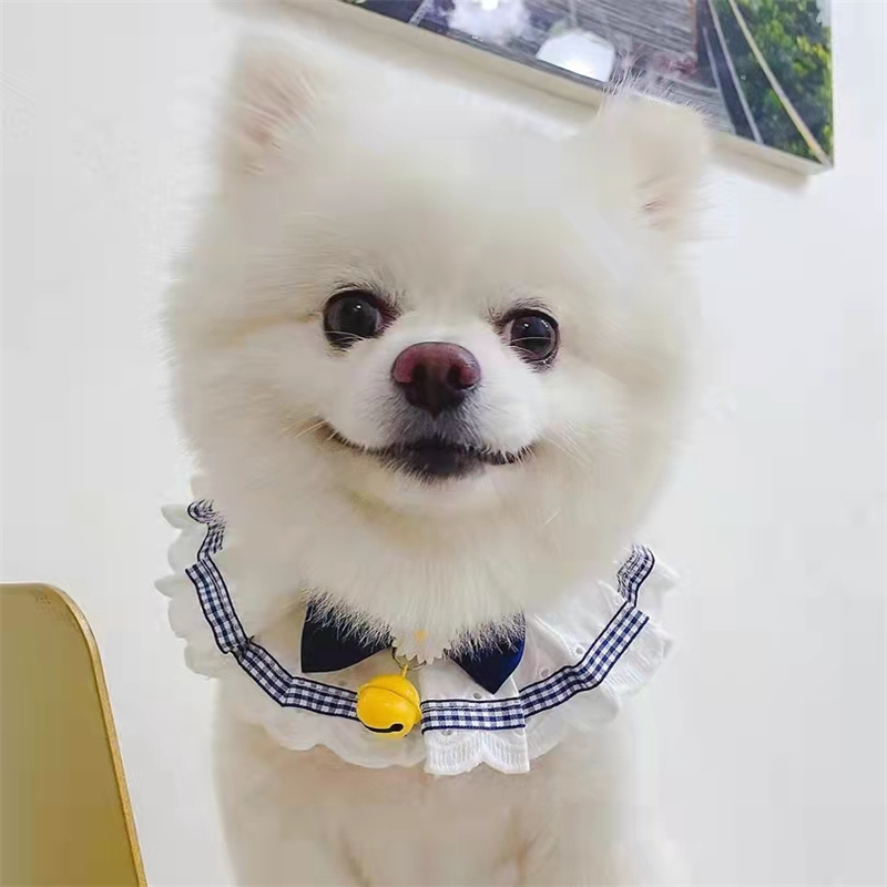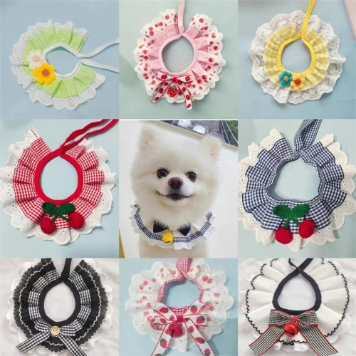 新款布偶英短貓咪可愛純棉蕾絲口水巾泰迪比熊狗狗三角巾圍脖項圈【S-小型4-6斤】
