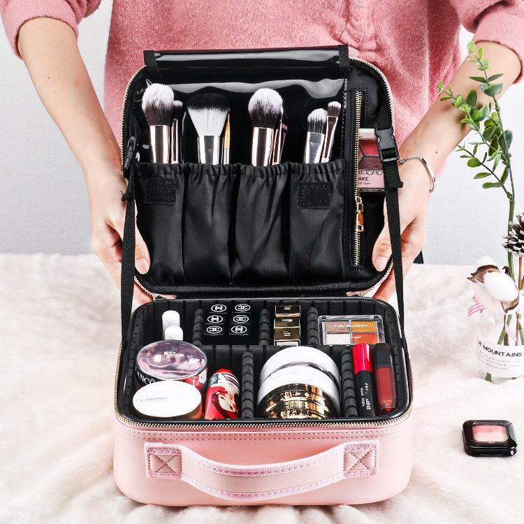 【台灣出貨】化妝包女 便攜小號 手提化妝品收納包 簡約PU皮質 旅行神器 化妝箱 韓版 化妝包 化妝品收納包 收納包