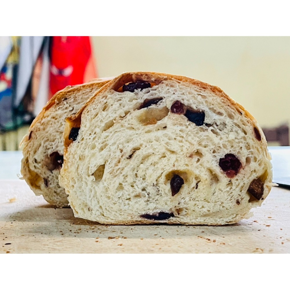口感:外皮酥香,內裡柔軟濕潤,果乾酸甜交織,帶有酒漬與糖漬果乾的馥郁香氣與多層次風味。